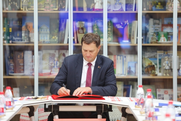 活动期间,马克西姆·雷任科夫外长与师生亲切交流,在贵宾纪念册上深情寄语,表达了对天外白俄罗斯研究中心(雅库布·科拉斯中心)的由衷赞叹和美好祝愿。