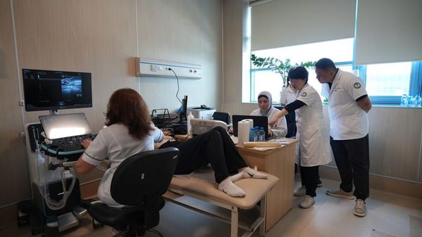 7月16日,天津市抗癌协会、天津医科大学肿瘤医院的医疗队专家在阿塞拜疆与当地医院的超声医生联合开展乳腺癌筛查。宋瑞 摄