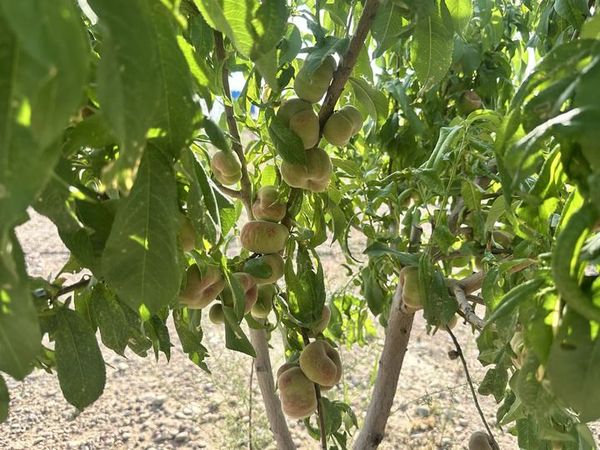 图为乌兹别克斯坦纳曼干州500兆瓦光伏电站项目周围栽下的果树,枝上已挂满果实。受访单位供图