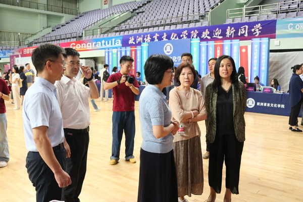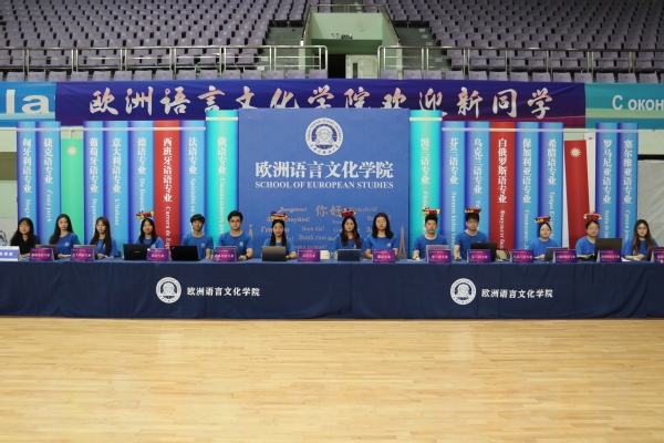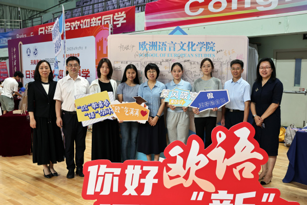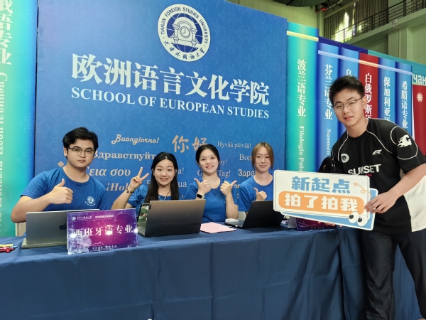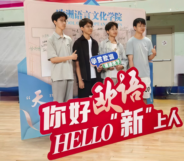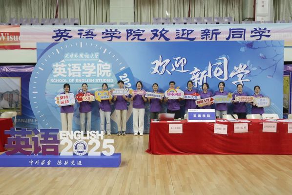 欧洲语言文化学院的迎新背景板由代表学院的这本书和象征16个专业的16本书共同组成——拼成一道“知识之门”,每个梦想都将在此启程。新生们可在寓意乐鱼·体育与上合精神的“‘天’作之‘合’”展板上签名留念,正式成为“天外欧语人”。学院贴心准备了多语种“你好”手提袋和卡套以及可自由拼字的创意文具,陪伴新生从第一声问候走向世界,记录每一个闪光的起点。