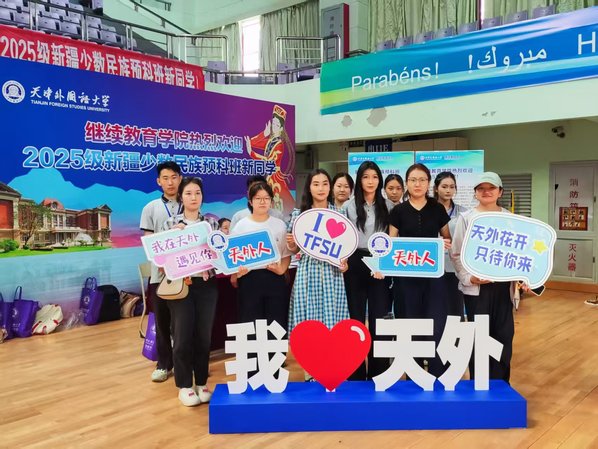 继续教育学院在2025级新疆少数民族预科班新生入校前,便由负责老师逐一对接,精准确认到校时间,并细致解答报到流程、校园生活等疑问,让异乡学子提前感受学院温暖。迎新现场通过布置欢迎展板、合影墙营造氛围,新生入学教育班会、家长见面会、民族团结教育、安全教育及参观北疆博物院等系列活动,以真诚热情迎接新生。亲爱的2025级新同学,当你接过印着天外校徽的迎新袋,尝到第一口温热的天津美食,这场与天外的相遇就已满是心意。未来,你将在多语种的课堂里拓宽视野,在跨文化的交流中增长见识。愿你以语言为帆,以梦想为船,从天外启航,驶向星辰璀璨的未来,抵达心之所向的彼岸!