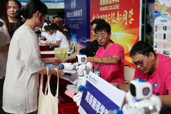 英语学院以“2025-2029”时钟为主视觉的迎新墙,见证着每一位学子大学生涯的正式开始。学院学生亲手绘制的校园landmarks地图,帮助新生徐徐展开大学生活的新画卷。学院组织新生们参观了《看得见的力量》中国故事新闻摄影图片展,勉励同学们铭记历史、砥砺前行,在新时代书写青春报国的新篇章。