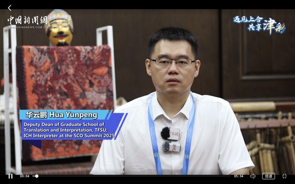 Recently, the Shanghai Cooperation Organization (SCO) Summit 2025 concluded successfully in Tianjin. During the event, China News Network exclusively interviewed Hua Yunpeng, Deputy Dean of the Graduate School of Translation and Interpretation at Tianjin Foreign Studies University and an intangible cultural heritage (ICH) interpreter for the SCO Summit 2025. While presenting ICH projects to foreign leaders, Hua skillfully combined Chinese wisdom with cultural depth. From storytelling that brought Yangliuqing woodblock new year pictures to life, to tea art interpretations intertwined with Silk Road legends, his approach highlighted cultural diversity in a subtle yet profound manner.