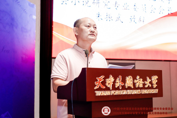 (中国)中外语言文化比较学会会长、浙江大学教授吴笛在致辞中表示,非常高兴与各位学者在天津相聚,共同探讨“小说研究的当下任务与外语学科建设”这一主题。他指出,中国文化建设与对外交流为比较文学与小说研究提供了丰厚资源。近年来,学会在各方支持下积极开展学术活动与赛事,如“求是杯”诗歌创作与翻译大赛,吸引了众多青年学子参与,对校园文化建设发挥了积极作用。强调,小说作为跨文化的重要文学体裁,承载着人类共同的精神追求,期待通过本次研讨会深化学术交流,推动学科发展,谱写文明和谐共生的新乐章。