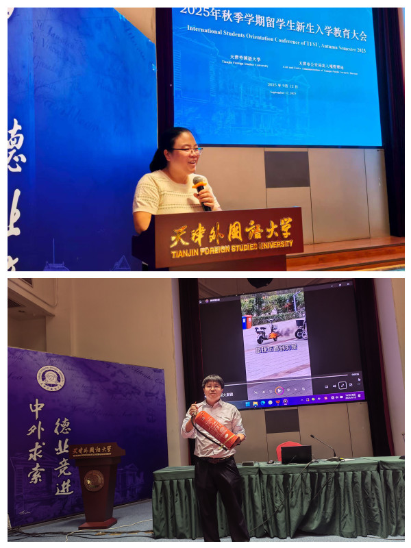留学生学生会主席李鸿洋作为学生代表发言,既向新生表示热烈欢迎,也分享了自己的天外求学经历:“尽管初来时面临新环境、语言障碍等挑战,但在老师的悉心指导和同学的热心帮助下,所有困难都慢慢克服了。” 他鼓励全体留学生以开放包容的心态勤奋学习,主动担当“中外文化使者”,为推动文明互鉴、增进国际友谊贡献力量。