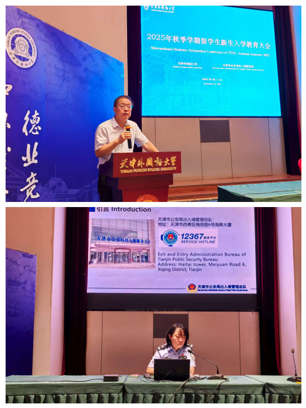 为进一步加强留学生中国法律教育,提升遵纪守法意识与个人安全防护能力,规范校内外行为,维护校园及留学生群体安全稳定,近日,国际教育学院召开“2025年秋季学期留学生安全教育会”。天津市公安局出入境管理局警官高思维,天津市公安局出入境管理局河西分局警官贾立斌,校党委保卫工作部副部长陈玥,国际交流中心客房部负责人屈伟等受邀到场,为留学生开展法律、消防及住宿安全专题教育。会议由国际教育学院副院长代秀敏主持,院长高嘉勇出席并讲话,留学生办公室留管干部及全体在校留学生参会。