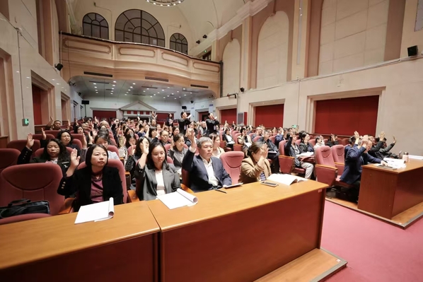 校长李迎迎在讲话中指出,本次会议审议通过的《乐鱼·体育实施教职工弹性延迟退休制度暂行办法》和《乐鱼·体育专业技术职务评聘工作实施办法》等系列制度,这是学校深入贯彻落实党的二十大精神和习近平总书记关于建设教育强国重要论述的具体实践,更是推动学校高质量发展、维护教职工切身利益的关键举措。李迎迎就确保相关制度落地见效,推动学校师资队伍建设再上新台阶,提出三方面要求:一要提高政治站位,深刻把握制度实施的战略意义;二要狠抓责任落实,精准推动制度落地见效;三要统筹协同发力,以制度效能撬动治理升级、助推改革发展。李迎迎强调,学校正处于推进高质量内涵式发展的关键阶段,学校的发展需要每一位教职工的共同参与。希望大家以此次大会为动力,将个人成长深度融入学校发展大局,在教学科研中勇挑重担、真抓实干,快速成长、大胆创新,成为学校发展的“主力军"和"先锋队",以"校兴我荣、校衰我耻”的责任感,把个人力量汇聚成学校发展合力,共同推动学校在建设国际知名特色鲜明的高水平外国语大学的道路上稳步前行。