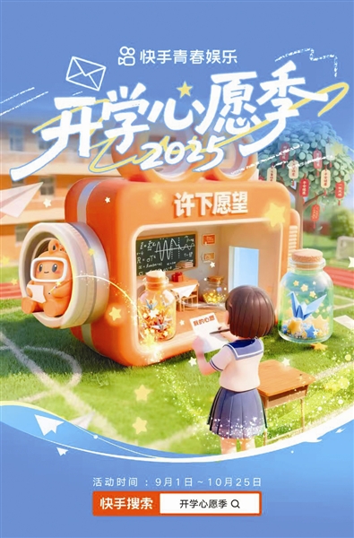 今年9月,快手校园与可灵AI共同启动“心愿可灵了”开学季活动,紧扣高校学生在新学期对自我成长与重塑的期待,鼓励其使用可灵AI工具将心愿可视化,以视频形式具象呈现理想中的校园生活与目标实现的模样,不仅为青春岁月增添仪式感,也向同龄人传递出积极的目标导向与情感共鸣。快手校园还将联合可灵AI抽选部分心愿予以心愿基金,助力学生迈出开学第一步。
