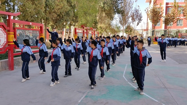 支教团与于田县第一中学积极开拓学生第二课堂的课程,面向七、八年级的15个班级开设太极拳课。太极拳是支教团在驻地每天必上的体育课,在30名支教团同学中选拔10名参与于田县第一中学太极拳课的授课,这10名同学积极投入到课程的教授中,带队教师精心指导10名授课同学的动作要领,为支教团通过太极拳传播中国传统文化奠定了坚实的基础。支教团中学组的部分同学还指导了于田县第一中学的学生排练话剧《烈火中永生——红岩》片段,并录制参与评比。