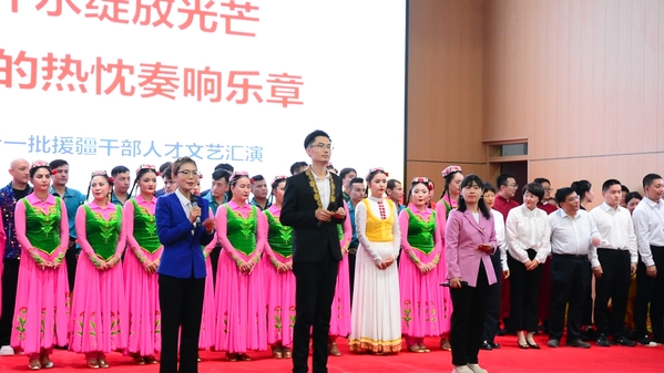 支教团心系于田,除了日常的支教工作之外,支教团积极参与到天津市援疆前方指挥部、于田县工作组的活动中来,在天津市第十一批援疆干部人才文艺汇演中,支教团领队教师担任主持人与天津援疆前指、天津职教援疆团队教师共同主持本次文艺汇演。此外,支教团领队教师及部分同学还参与到由于田县工作组、于田县文工团和在驻地各高校支教大学生共同表演的节目《我和我的祖国》《一起跳起来》的排练和演出中,为本次文艺汇演贡献了天外力量。