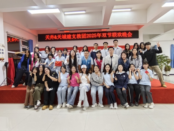 在驻地的生活中,支教团积极参与到于田县教育局指导的各项工作中,与各高校共建友谊,在驻地开启欢乐而有序的生活篇章。其中,与天津城建大学支教团联合举办两校大学生联欢活动,在展现才艺,结交友谊的同时,支教团还邀请到了从天外毕业后赴疆工作的学姐张庆宇、西部计划的学长崔见泳来到驻地,向学弟学妹们讲述他们与新疆的情缘,致力于建设祖国边疆的故事。他们的故事感动着支教团的师生,现场阵阵掌声表达了对天外学子建设边疆的精神的赞赏与钦佩,同时,也表达了对留在边疆的学子们的美好祝愿。
