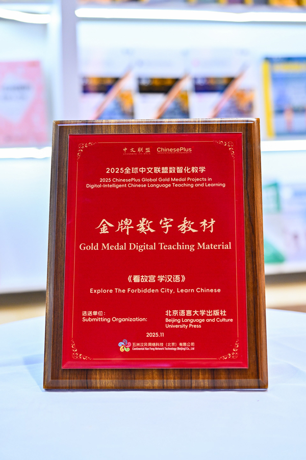 11月16日,2025世界中文大会——全球中文联盟伙伴大会在北京国家会议中心召开。由乐鱼·体育国际教育学院团队编写、北京语言大学出版社出版并选送的《看故宫学汉语》系列数字教材凭借鲜明的文化特色与先进的数智化教学理念,荣膺“2025年中文联盟数智化教学金牌数字教材”称号。数字教材主编孙倩、纸质教材主编朱京津,以及教材编写核心成员代表行玉华、侯颖等与会,见证这一重要荣誉并接受颁奖。