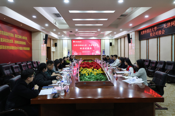 李迎迎对天津网商会一行的到访表示热烈欢迎,并系统介绍了天外的学科专业优势及人才培养特色。她表示,以网商会会员企业为代表的外向型经济企业是天津经济社会发展的重要力量,是连接高校与就业市场的重要纽带,在破解学生就业结构性矛盾、提升人才培养适配性上发挥了重要作用。她强调,面对新形势,我校正积极探索校企协同育人的“天外模式”,一方面着力构建“外语+技术+领域”的复合型人才培养体系,另一方面积极依托行业协会拓宽合作渠道。期待与网商会在产业学院共建、人才培养模式创新等方面深化战略合作,共同打造校企协同育人的新高地。