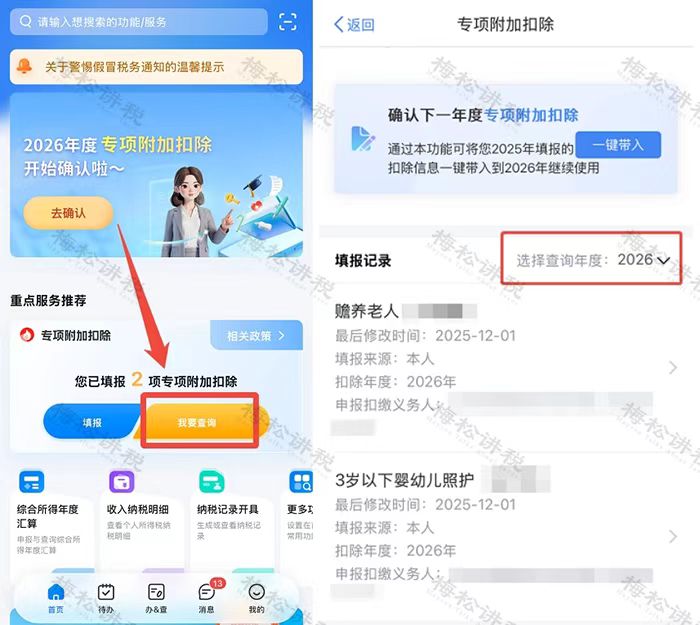 (2)有老人在2025年去世,2026年不能再申请赡养老人专项附加扣除;