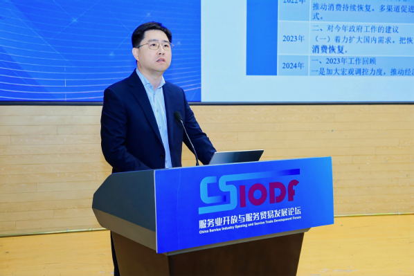 蒋耀平、张伟、刘涛、史建平、佟家栋、王海文、陶强等嘉宾分别就:“‘十五五’服务贸易发展展望”“乘数字浪潮,筑服务高地,奋力谱写中国服务贸易高质量发展新篇章”“进一步扩大服务消费”“当前中国宏观经济形势分析与展望”“全球服务贸易形势与趋势分析”“世界主要经济体贸易政策对中国服务贸易的影响”“AI赋能服务贸易高质量发展”等相关议题发表主旨演讲。
