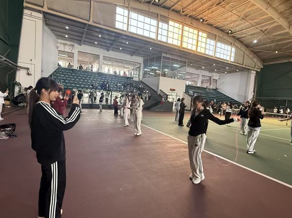 跳绳赛场节奏明快,选手轻盈跃动的身影成为春日美景,让学子在运动中享受乐趣、锤炼意志。