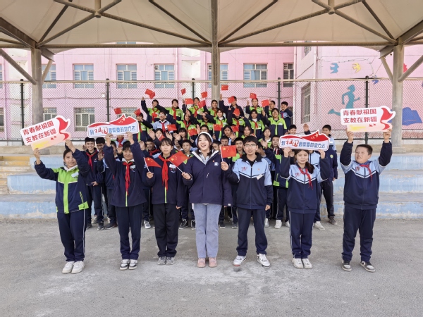 在支教期间,支教团在于田县一中开展主题班会,支教团成员倪佳莹、马毓聪、但宗林、刘芮孜、诸葛霏霏等同学分别从热爱祖国、津于情深、播种梦想等角度开展了别具一格的主题班会,获得了一中师生们的好评。其中,倪佳莹同学通过展示短片、老照片等形式,带领学生们回顾新疆发展的沧桑巨变。从戈壁绿洲的生态蝶变,到城乡风貌的日新月异;从民族团结的深厚情谊,到教育医疗的全面提升。一个个生动案例让学生们真切感受到祖国对边疆的关怀,深刻理解团结奋进是新疆稳定发展的基石。随后,她又带领学生们学唱《筑梦疆来》,纯真的歌声将对家乡的热爱、对祖国的祝福融入每一句歌词中。