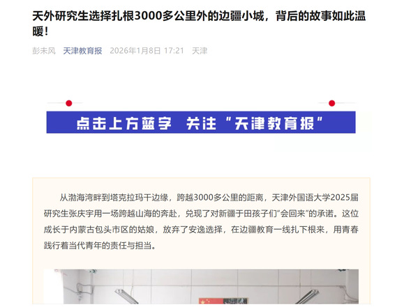 然而,选择扎根边疆的道路并不平坦。当张庆宇向父母说出想要留在新疆的想法时,遭到了坚决反对。“太远太偏”“条件艰苦”,父母的担忧并非没有道理。身边的朋友也纷纷劝说,担心她一个人在陌生环境中难以适应。导师曾邀请她留在天津发展,身边的同学大多选择返乡或去往东部沿海经济发达城市,留疆在众人看来并非“最优解”。但张庆宇没有动摇,支教期间与孩子们结下的情感羁绊,让她始终无法割舍。回到天津后,孩子们的成绩单截图、节日问候从未间断,这份跨越千里的牵挂成为她最坚定的支撑。