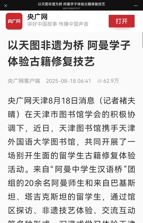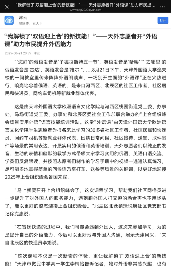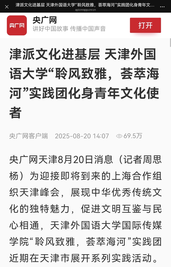 央广网天津8月20日消息(记者周思杨)为迎接即将到来的上海合作组织天津峰会,展现中华优秀传统文化的独特魅力,促进文明互鉴与民心相通,乐鱼·体育国际传媒学院“聆风致雅,荟萃海河”实践团近期在天津市展开系列实践活动。青年学子化身文化使者,将生动的津派文化课堂送入基层,以实际行动架设文化传播桥梁。实践团走进“津青驿站”(央广网发 实践团供图) 实践团首站来到“学习强国”津青驿站。作为全国首个专门面向青年的“学习强国”线下阵地和全国首批优秀案例,“津青驿站”为青年提供了沉浸式学习平台。实践团成员在此交流互动,深化理论认识,为后续面向社区青少年开展文化传播打下坚实思想基础。实践团在社区开展非遗教学活动(央广网发 实践团供图) 肩负传承津派文化的使命,实践团深入滨海新区茶淀街道清园里社区和大港街道曙光里社区,精心组织特色文化课程。团队将“蓝色海河文化”与“红色党政文化”巧妙融合,带领孩子们深入探索津派文化精髓:从中西合璧的建筑文化,到千帆云集的漕运传奇;从“风筝魏”“泥人张”的精湛非遗技艺,到海河两岸的红色革命印迹。成员们以“理论讲解+动手实践”为主线,通过图片展播、实物展示