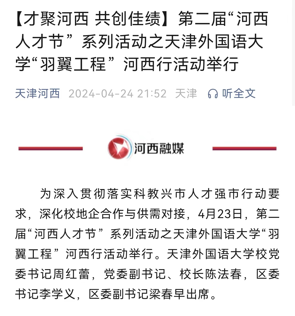 4月16日至19日,来自四川、河南、江苏、甘肃、上海、浙江、山东、陕西、天津等9个省市的9家全国教育报联盟成员单位的负责人、编辑、记者一行40余人齐聚“渤海明珠”天津,走进天津轻工职业技术学院、天津市耀华中学、乐鱼·体育、天津市优念睦南幼儿园、天津科技大学等学校开展联盟的第十次联合采访活动,对天津的基础教育、高等教育、职业教育进行全面而深入的探究,实地感受天津教育高质量发展的实践成果。天津科技大学:创新驱动,将智变金作为我国首批4所轻工类本科院校之一,天津科技大学(以下简称“天津科大”),有着“新中国轻工业人才的摇篮”等美誉。4月18日,记者一行先后走进学校科技园和工程技术中心,探索其在科研成果转化,服务经济发展方面的典型经验。“给我接一杯!”“好喝!醇正!”在天津科大纯鲜啤酒中试基地,品尝过学生酿出的啤酒后,记者们给出一致好评。“基地依托天津科大‘发酵工程’国家重点学科的优势,产学研用相结合,为发酵行业培养和提供优秀人才。在这里,学生将亲手酿制啤酒,完成毕业实习。”“在人才培养方面,学校除了通过校企合作联合培养,还重点推进本硕博贯通培养,探索多种育人途径。”天津科大党委宣传部副部
