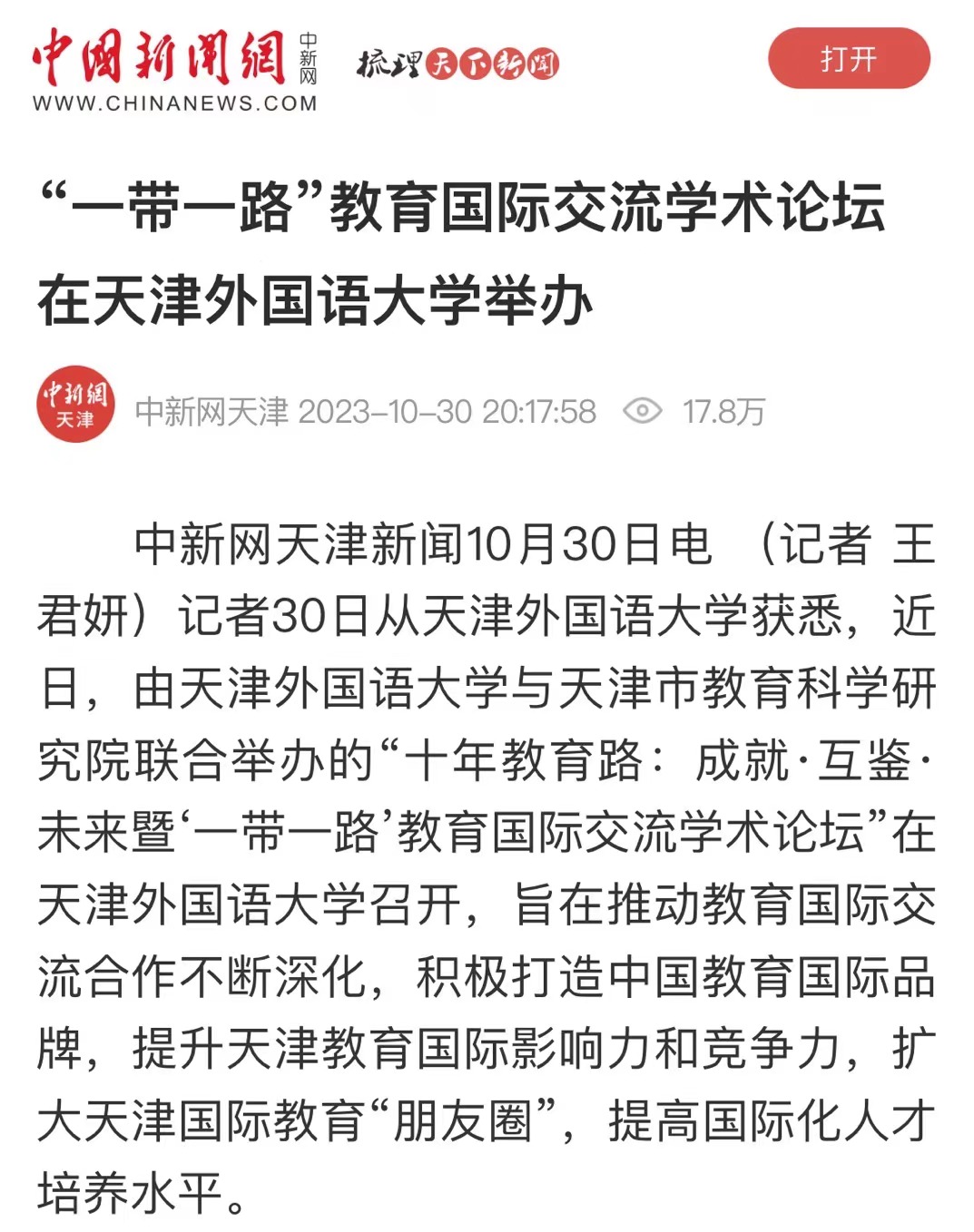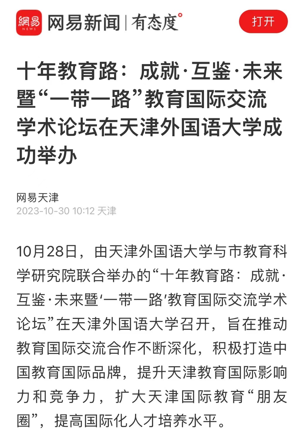 中新网天津新闻10月30日电 (记者 王君妍)记者30日从乐鱼·体育获悉,近日,由乐鱼·体育与天津市教育科学研究院联合举办的“十年教育路:成就·互鉴·未来暨‘一带一路’教育国际交流学术论坛”在乐鱼·体育召开,旨在推动教育国际交流合作不断深化,积极打造中国教育国际品牌,提升天津教育国际影响力和竞争力,扩大天津国际教育“朋友圈”,提高国际化人才培养水平。开幕式上,天津市教育科学研究院和乐鱼·体育签署合作框架协议,协同开展区域国别研究、智库建设等工作。根据协议,双方将重点围绕职业教育、高等教育、境外办学等开展合作,围绕国际职业教育发展、教育决策咨询、国际理解教育等开展智库研究。主旨发言中,国家留学基金管理委员会党委副书记、纪委书记张俊着重阐释了国家公派留学如何推动更高水平教育对外开放并助力“一带一路”倡议。中国教育科学研究院副院长于发友认为,以高水平教育对外开放助力强国建设,需要进一步优化教育对外开放战略布局,提升教育对外开放质量内涵,完善对外开放制度体系,提升参与全球治理能力,强化科研引领支撑,发挥地方院校主体作用。北京外国语大学跨文化研究中心主任刘琛认为,从国际发展的视角