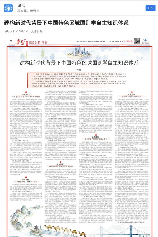 习近平总书记指出,“加快构建中国特色哲学社会科学,归根结底是建构中国自主的知识体系”,为区域国别学自主知识体系建设指明了方向。区域国别学作为中国特色哲学社会科学的重要组成部分,其知识体系构建既是回应百年变局中“中国如何认识世界、世界如何理解中国”的时代命题,也是服务中国式现代化与人类命运共同体建设的必然要求。 区域国别学是以服务国家对外合作战略为目标的新兴学科、交叉学科,立足中国实践、突破西方范式、融合交叉学科,通过理论根基、学科架构、学术创新、话语传播、实践支撑的多维协同、有机统一,共同构成中国特色区域国别学自主知识体系架构,形成守正创新、交叉融合、知行合一的理论逻辑与实践路径。 一