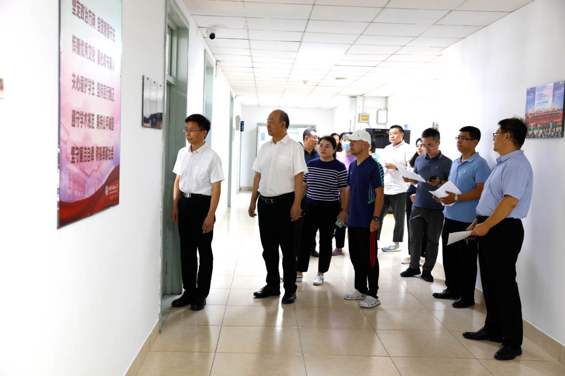 新学期临近,为进一步强化学校管理,推动新学期开好头、起好步,确保新学期开学工作有序进行,近日,校领导分赴两校区检查督导新学期开学前各项准备工作。校领导先后来到两校区的教学楼、食堂、宿舍、浴室、国际交流中心、图书馆、超市、快递点等开学保障关键点位,实地检查各区域开学工作落实情况,察看设施设备运行状况,详细了解各环节安全管理和条件保障等情况,全面掌握各部门为新学期所做的准备工作,对新学期校园运行、教学开展、后勤保障、校园安全、秋季传染病防控等方面工作进行了深入检查和现场指导,对检查中发现的问题现场落实整改。校领导对开学准备工作给予了充分肯定,指出在今年暑期国外团组多、施工项目多、汛期雨水多的重重考验下,各个部门顶住工期紧、任务重的压力,圆满完成了暑期各项工作,为新学期的顺利开展提供了坚实保障;并对进一步做好开学工作提出具体要求,明确各部门要认真落实学校开学工作部署,从严从细抓好开学各项工作,加强协同调度,形成工作合力,优化组织保障,始终保持良好状态奋战一线、履行职责,确保学校开学前后各项工作扎实、有序推进,以“辛苦指数”换取师生“幸福指数”,以优异成绩向60周年校庆献礼,奋力谱写学校各项事